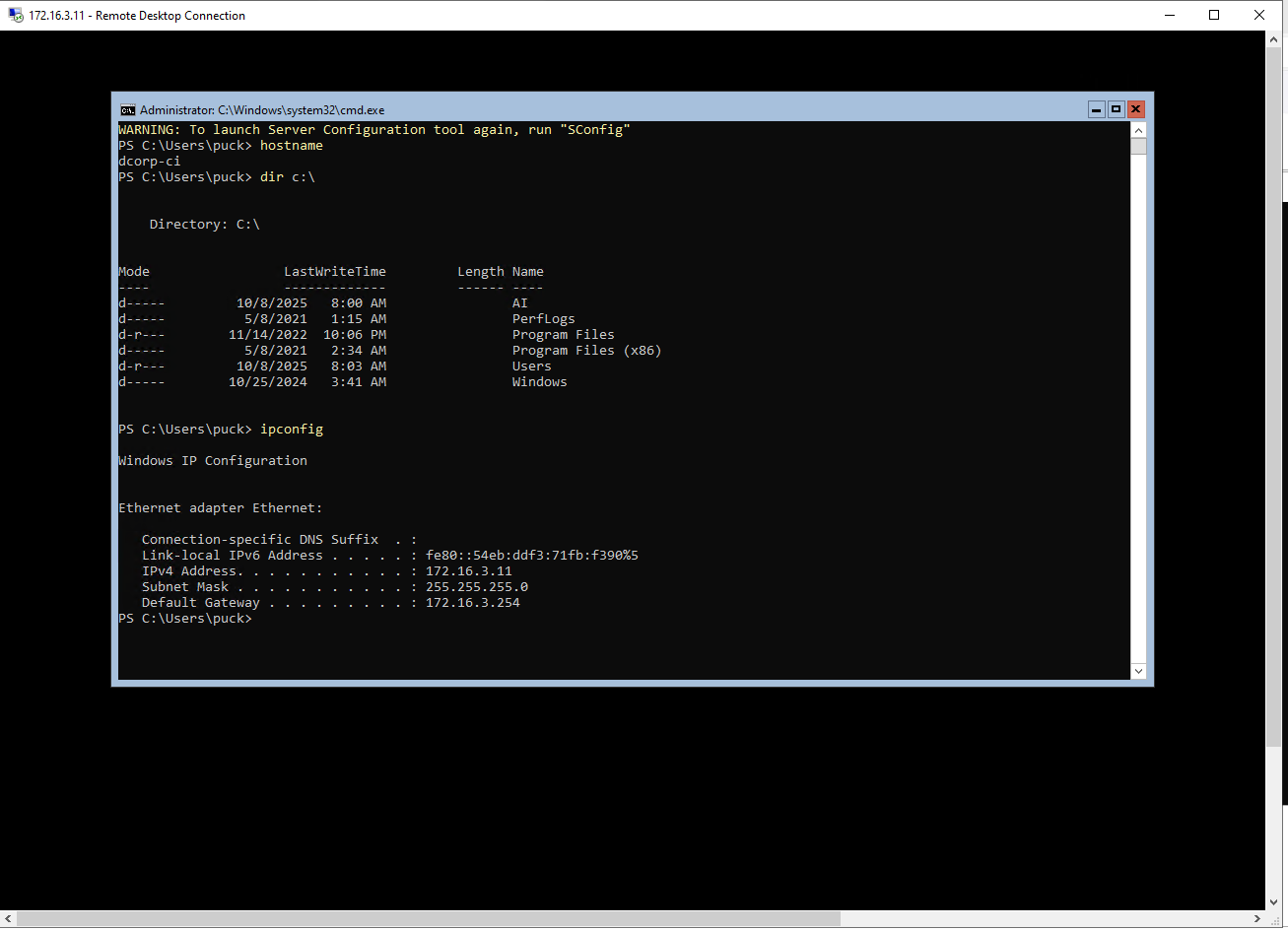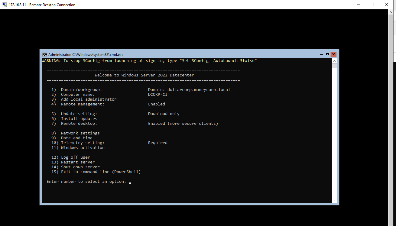 but it’s a server 2022 Core thus no GUI but Command Line Powershell is available