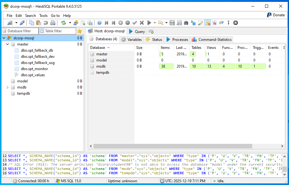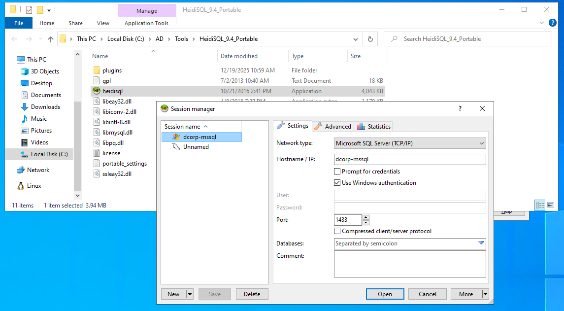 note heidissql can be used to connect to dcorp-mssql