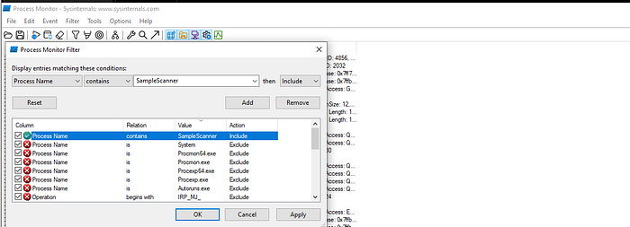Add a filter: Process Name -> contains-> SimpleScanner.exe