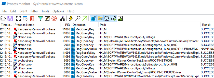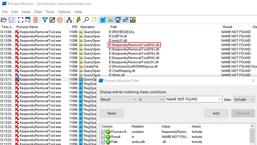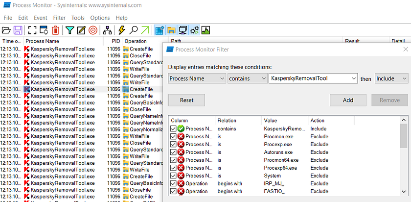First applying the filter for KasperskyRemovalTool process name